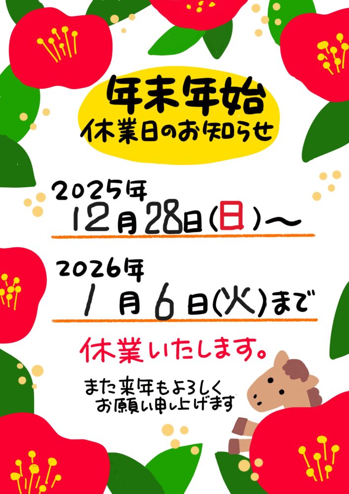 ここ数日『冬らしい』寒さを感じております お陰さまで、無事一年を終えることができました 毎年末、新しい年のアレコレを目標に掲げるのですが… 絵にかいた餅とならぬよう頑張りたいと思います 本年同様 来年もよろしくお願いいたします 1月7日(水 ...